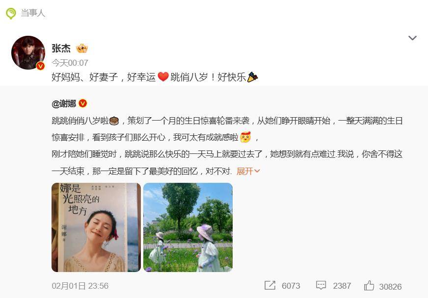 张杰一句“好妈妈、好妻子,好幸运”,直接让这对明星夫妻的相处模式再度成为焦点。2月2日,张杰转发妻子谢娜为双胞胎女儿庆生的长文,并附上深情告白,这番公开且具体的