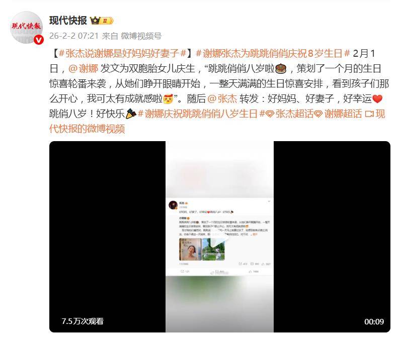 张杰一句“好妈妈、好妻子,好幸运”,直接让这对明星夫妻的相处模式再度成为焦点。2月2日,张杰转发妻子谢娜为双胞胎女儿庆生的长文,并附上深情告白,这番公开且具体的肯定,瞬间点燃了网络。