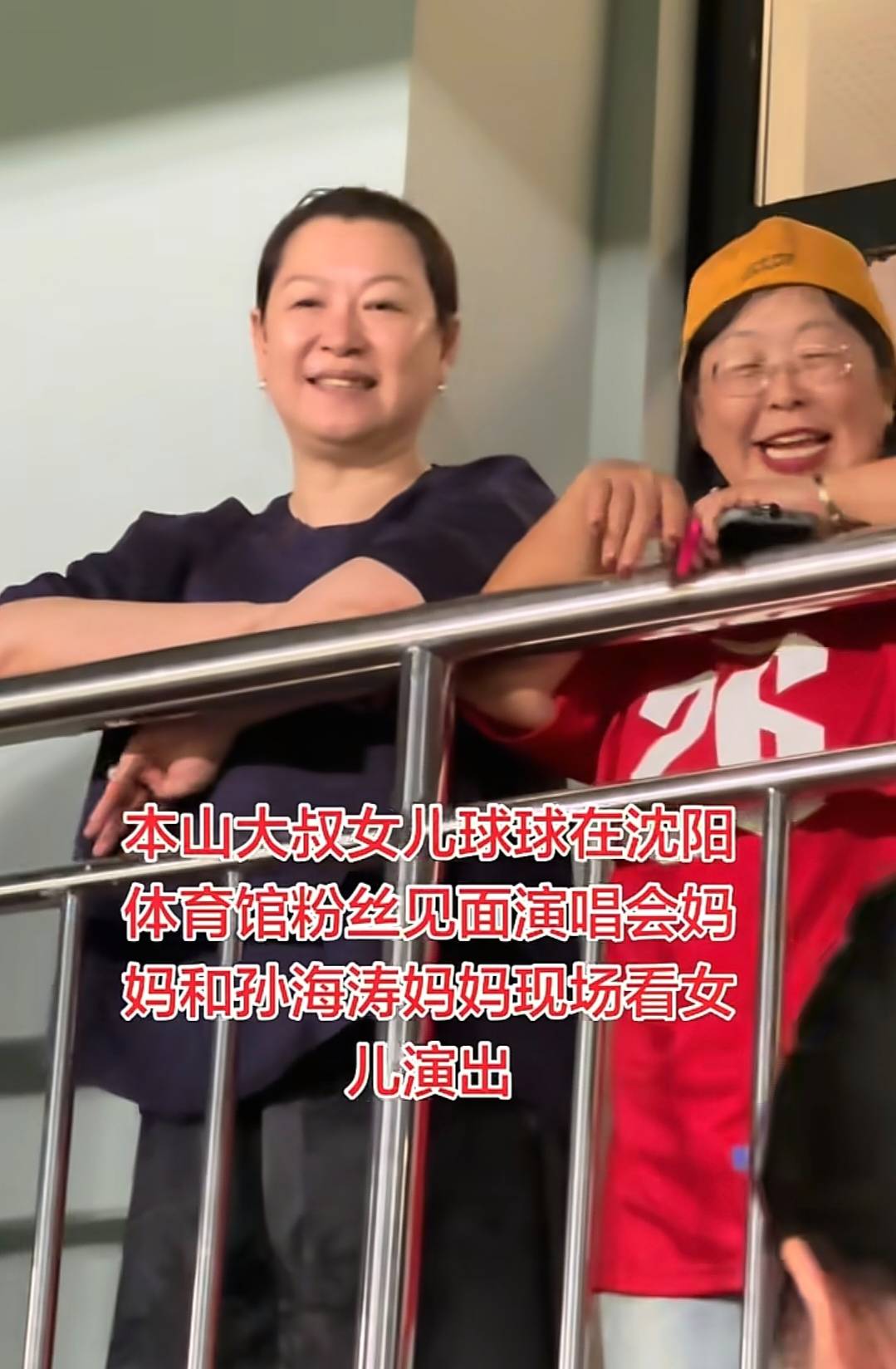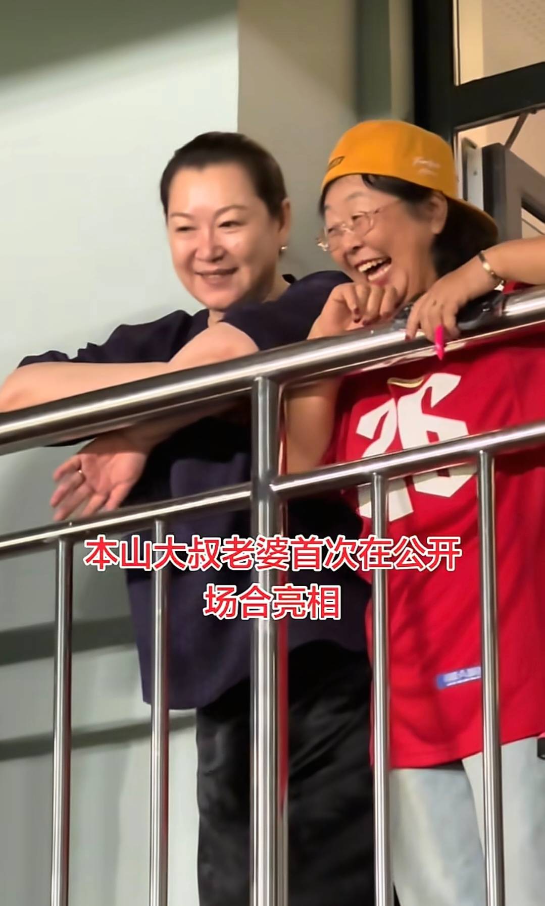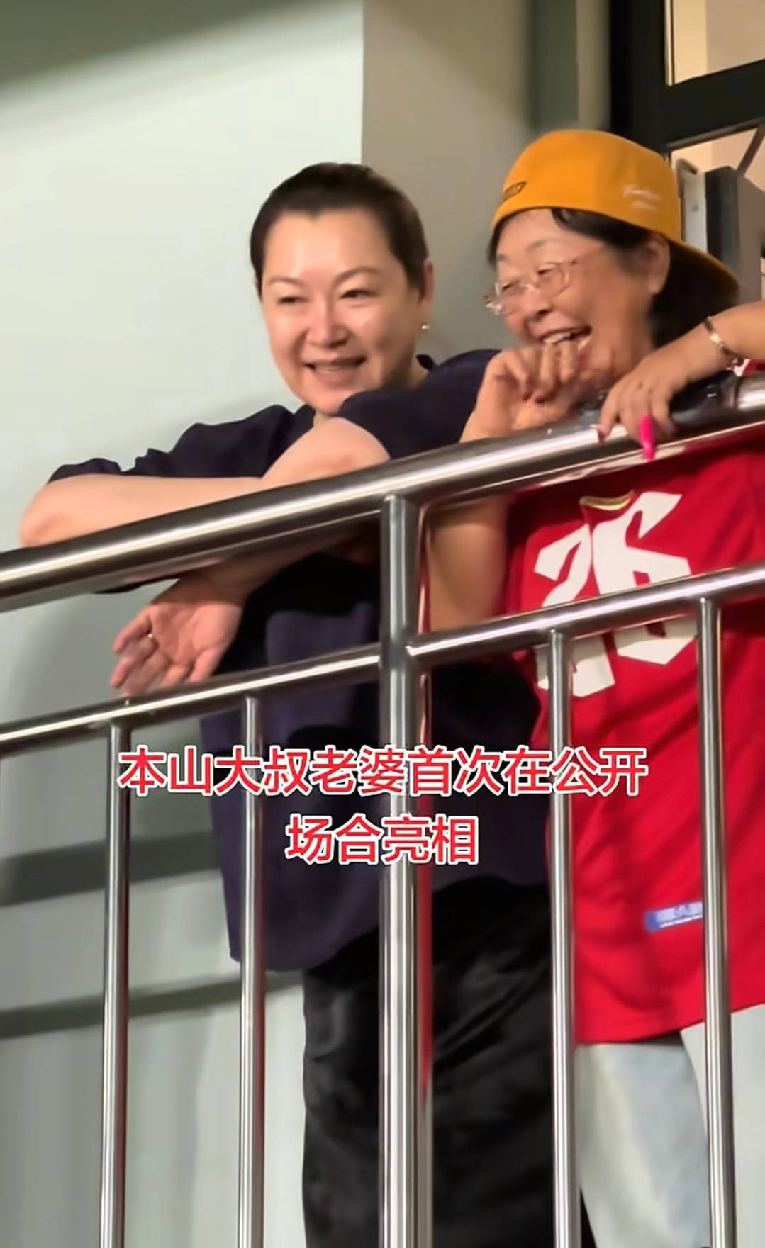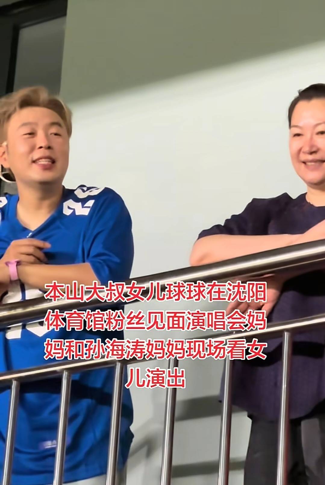 当时他们仨站在楼上的铁栏杆旁边,聊得特别开心,还手舞足蹈的。