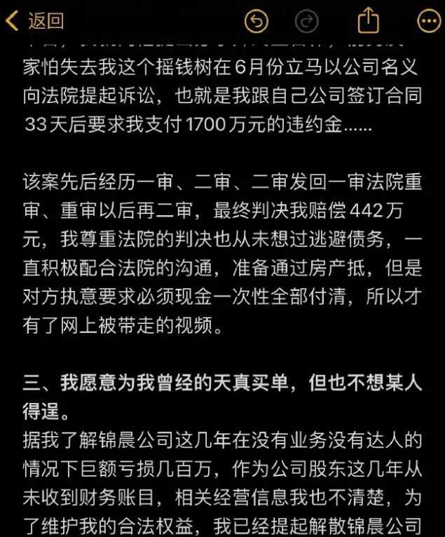 事后,男方以此作为证据,向其索赔1700万,经过法院的审理,刀小刀最终被判赔付442万。