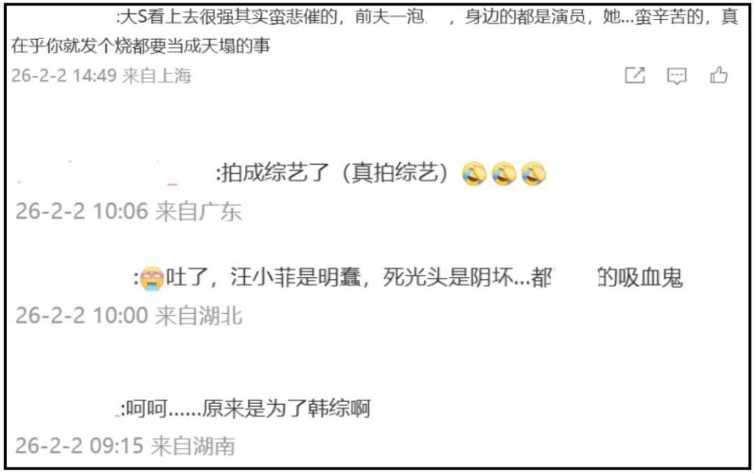 作为大S的家人,他们是悲伤的,作为离不开聚光灯的明星家族,他们的悲伤越看越觉得打了折扣,仿佛永远夹杂着权衡利弊。