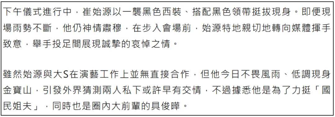 连一向和S家关系紧密的台媒都没收到消息,看到韩星现身很是诧异,了解之后才知道突然出现在大S周年仪式现场的韩星名叫崔始源,台媒各种猜测崔始源出现原因,以为他和大S私下有交集,真相却是崔始源来支持具俊晔了。