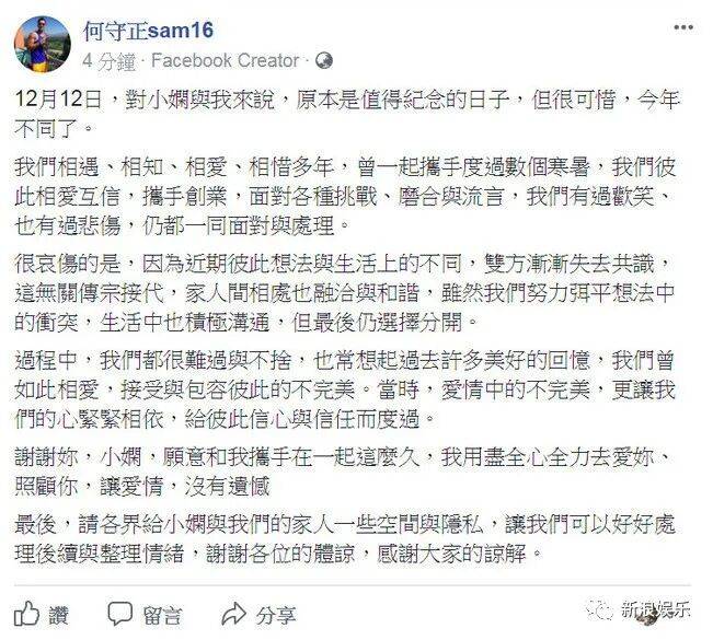 但他们也强调,彼此是和平分手,未来都还会是朋友。