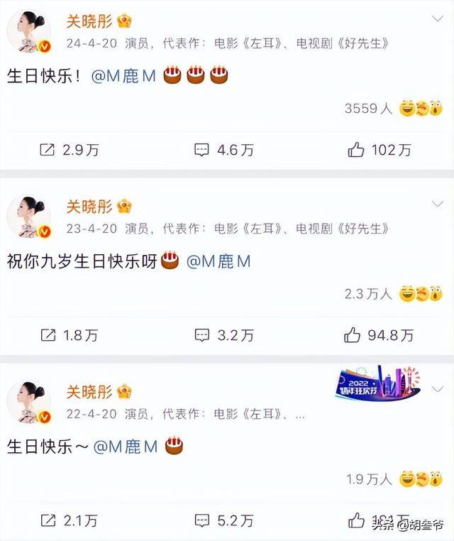 每年生日都卡点送祝福,关晓彤卡点 23:31,明摆着就是纪念自己 23 岁遇见 27 岁的鹿晗。