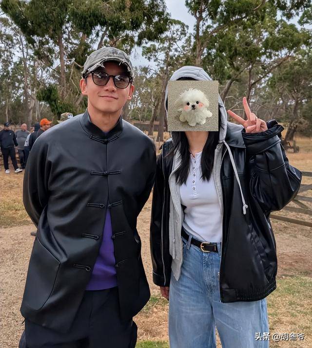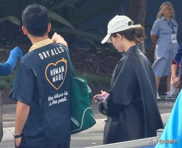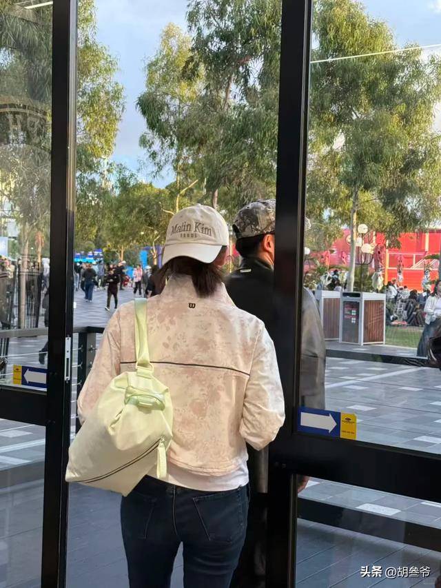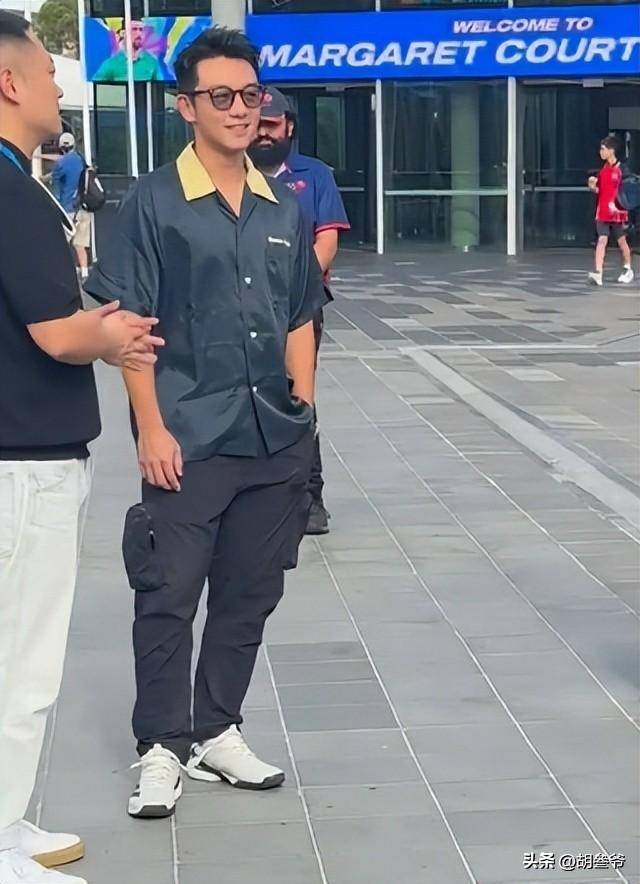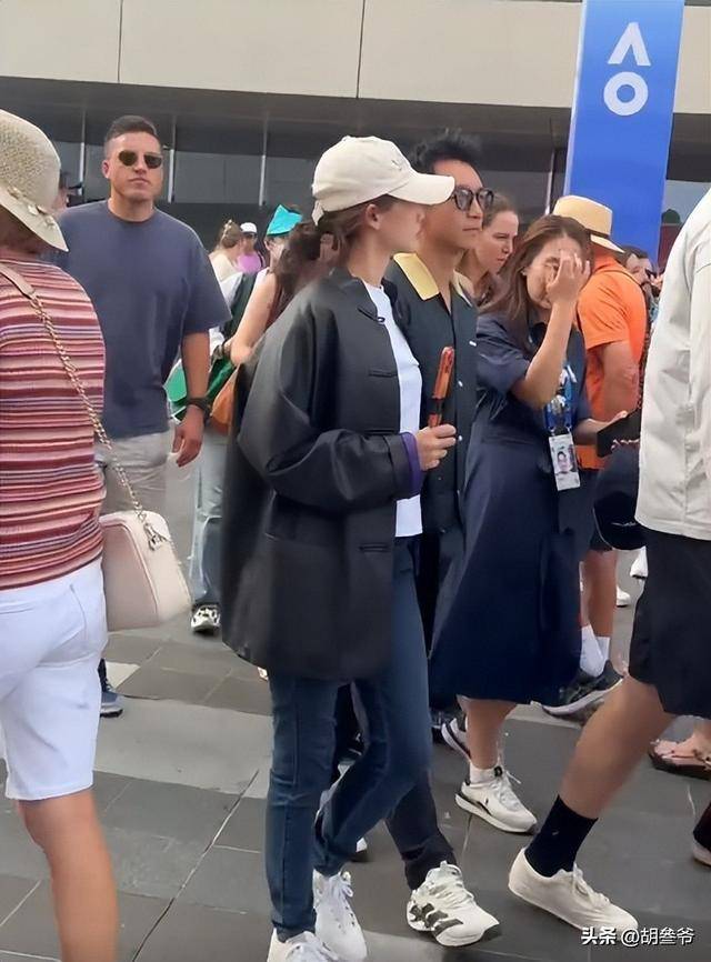 1月29日,墨尔本当天体感近30℃,观众都穿清凉夏装,郑恺一身休闲短袖清爽利落,苗苗却裹着黑色皮衣,领口紧扣双手插兜,和周围氛围格格不入。