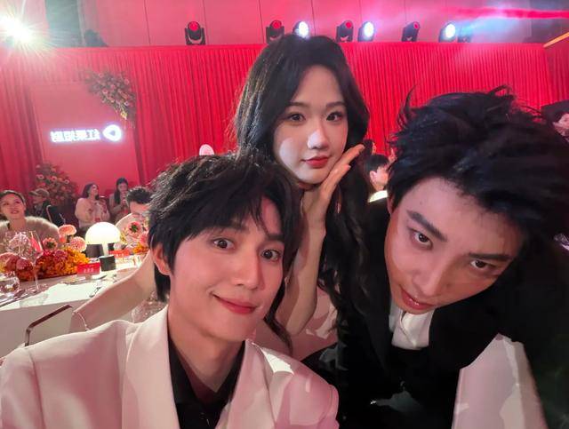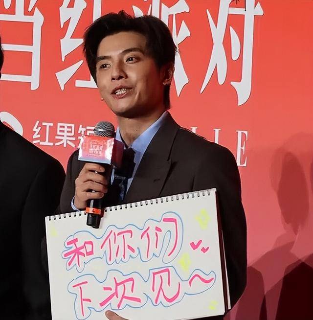他当天状态虽然很放松,但是却没了剧里的自信,在一堆的霸总面前,他只能比耶装可爱,毕竟他这身高也耍不了帅什么的。