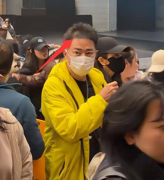 穿羽绒服后更明显,站在那儿看着像普通的中年大叔,完全没了当年演公孙策时的俊朗劲儿。