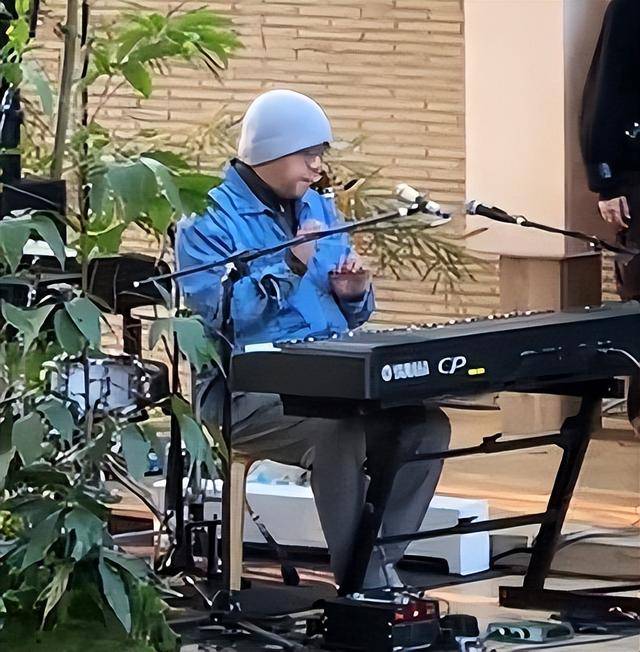 他坐在一堆乐器中间,面前摆着合成器,手指在键盘上按的时候特别专注,偶尔抬头和乐队成员说话,嘴角会轻轻扬一下,和舞台上那个曾经眼神桀骜的样子完全不同。