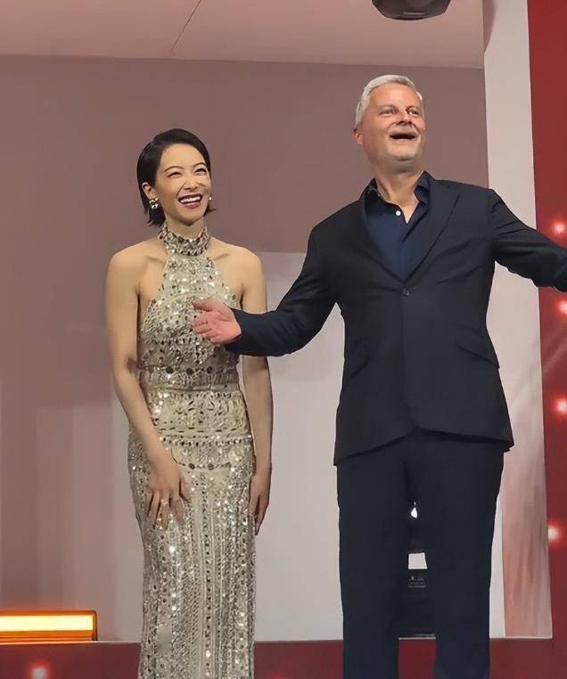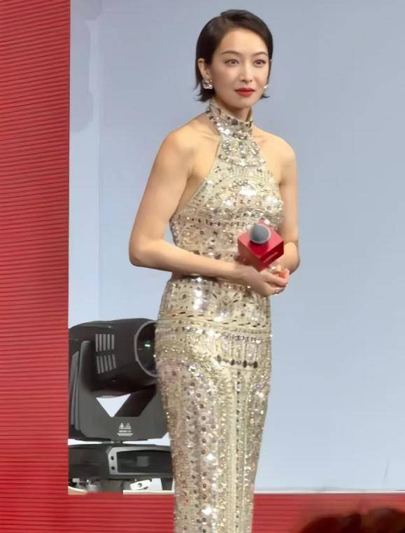 她穿的黎巴嫩高定 Zuhair Murad 2026 早春度假系列香槟色亮片挂脖裙,简直是把星空缝在了身上 —— 挂脖设计精准卡住直角肩和天鹅颈的优势,露背剪裁大胆亮出练舞练出的蝴蝶骨,利落短发中和了亮片的浮夸,刚柔并济的气质拿捏得死死的。