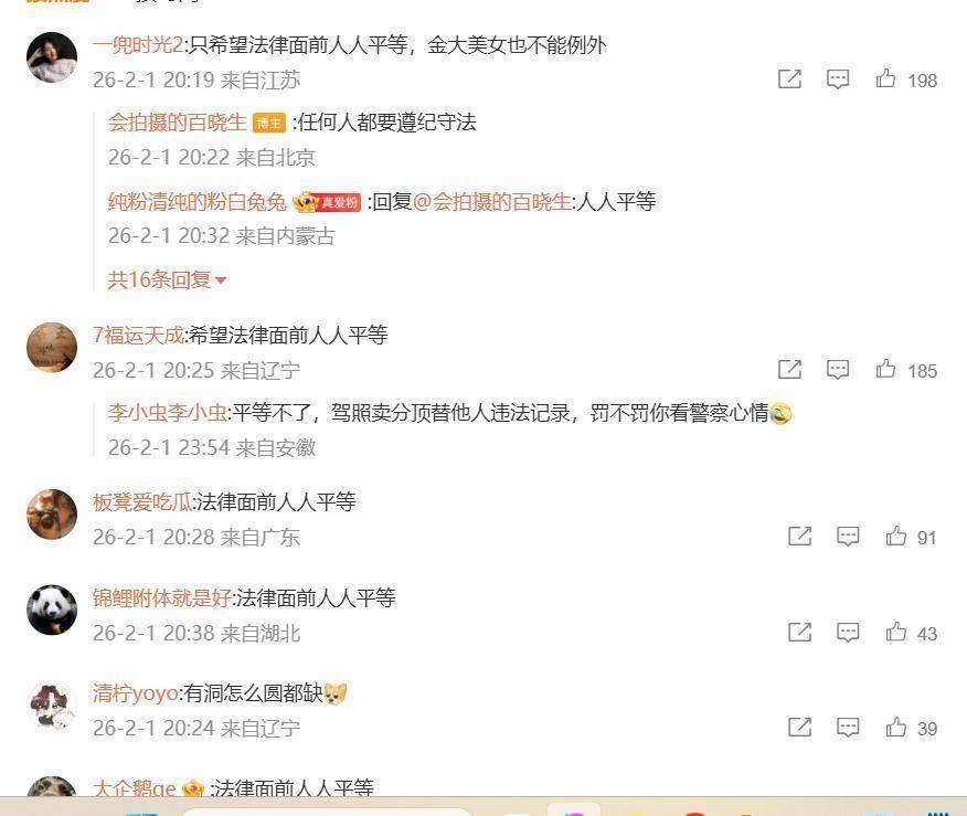 评论区瞬间站队,“法律面前人人平等,金大美女也不能例外” 的留言刷了几千条,这场风波硬是从 “瓜田小插曲” 变成了 “规则大讨论”。