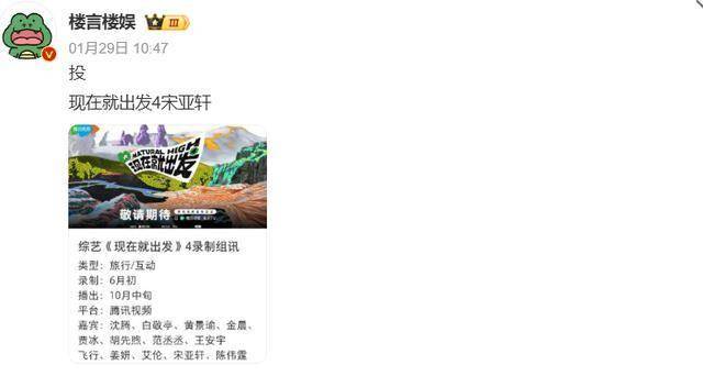 还有网友衍生出了一个新的阴谋论,怀疑他这波是冲着节目来的,因为金晨事件曝光的时间点有些微妙,刚爆出《现在就出发》新一季的成员阵容没多久。
