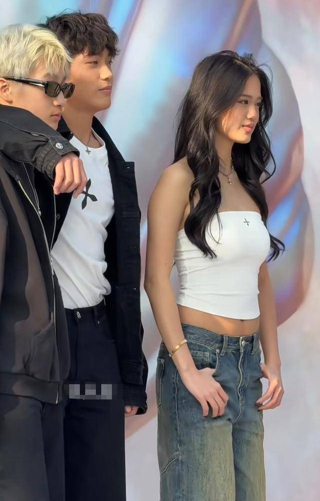据网友分享的视频,他们仨往台上一站,让人挪不开目光。其中,邹明轩站在最左边,看起来变化好大,染了一头黄发,戴一副墨镜,黑色T搭配黑色外套和黑色裤子,脖子戴项链,感觉他瘦了好多,乍看觉得他跟时代峻峰张俊豪有点像。Joe站在中间,一头短卷发,白色T搭配黑色牛仔外套和黑色裤子,脖子同样戴项链。他不笑的时候酷帅酷帅的,笑起来的话感觉像个阳光大男孩,感觉很可爱。Jaden站在最右边,一头长发如瀑布般下垂,身穿一件白色背心,露出小蛮腰,下搭牛仔阔腿裤,又高又漂亮。