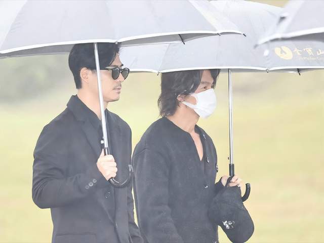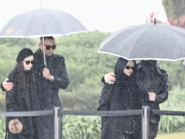 罗志祥、杨丞琳、蔡康永、范玮琪夫妻、吴佩慈、阿雅、范晓萱...超过十位圈内好友冒雨到场。Super Junior的崔始源前一天还在日本活动,特意赶来放下一朵花。具俊晔的酷龙队友姜元来坐着轮椅从韩国飞来,具俊晔亲自推着他照料全程。