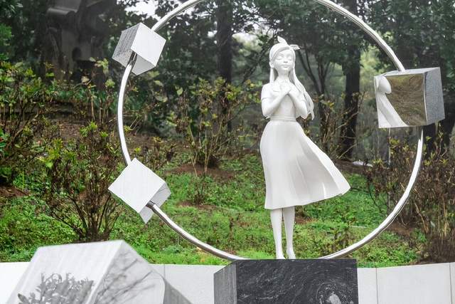 具俊晔做到了。通往雕像的9级白色台阶蜿蜒成S形,韩文中"9"与"具"同音。他说,这是把姓氏刻进通向她的路。雕像基座上,99颗珍珠镶嵌在裙摆,其中竟藏着2001年大S婚礼头纱上的遗珠,还有《流星花园》庆功宴时她戴过的耳饰。