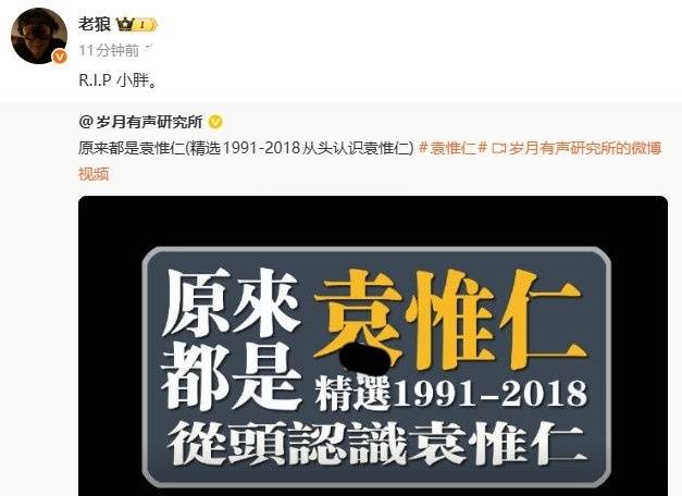 老狼、张宇以及那英工作室,甚至在得知袁惟仁去世后,还专门发文悼念他。