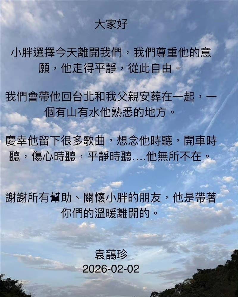 今年的2月2日,妹妹袁蔼珍在对外的讣告中悲伤地写道:小胖他从此自由了,我们会把他带回父亲身边,带到一个有山有水他又熟悉的地方安葬。