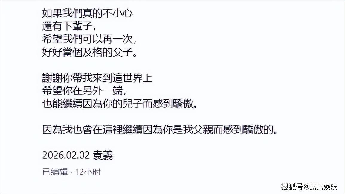 袁义发文“希望下辈子我们可以做个及格的父子”