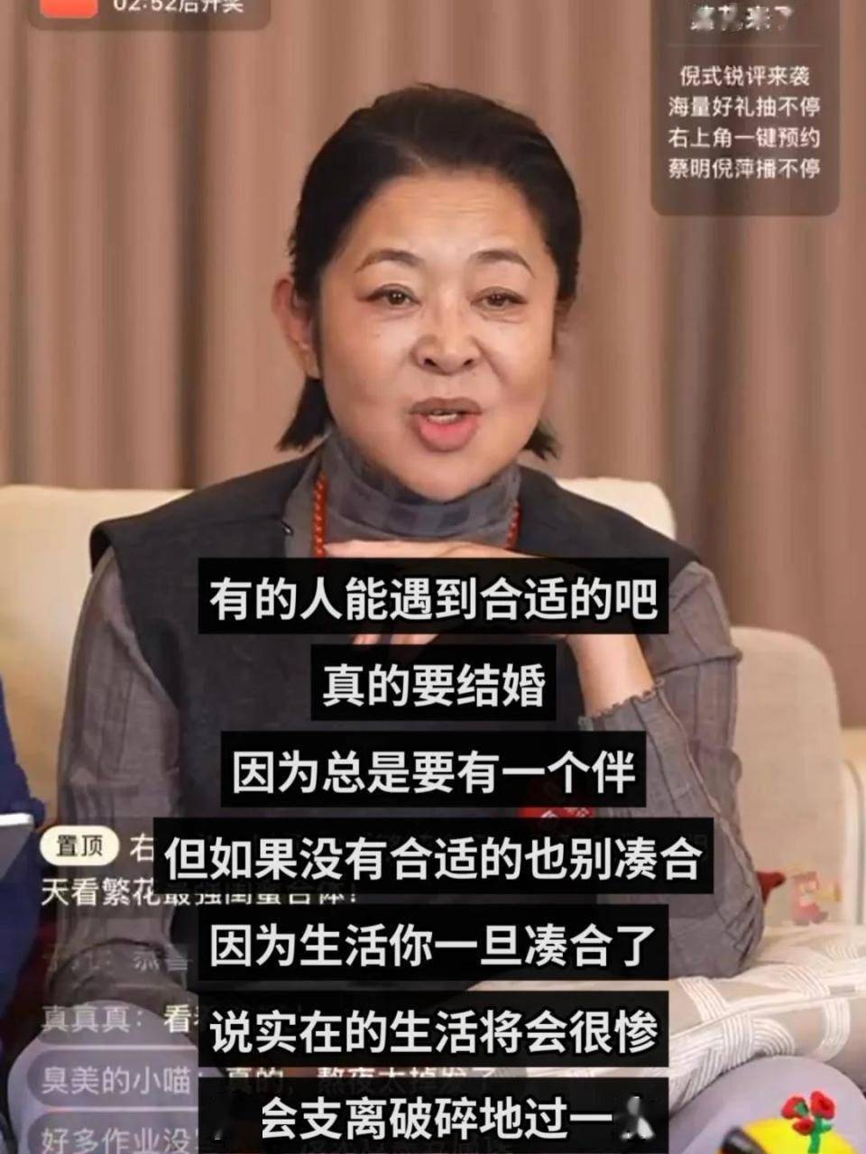 尽管纵观其一生历经沧桑,可晚年的她除了依旧亲切外,又多了许多充满智慧的态度,直播或节目中总是金句频出,令人感慨:通透又犀利。