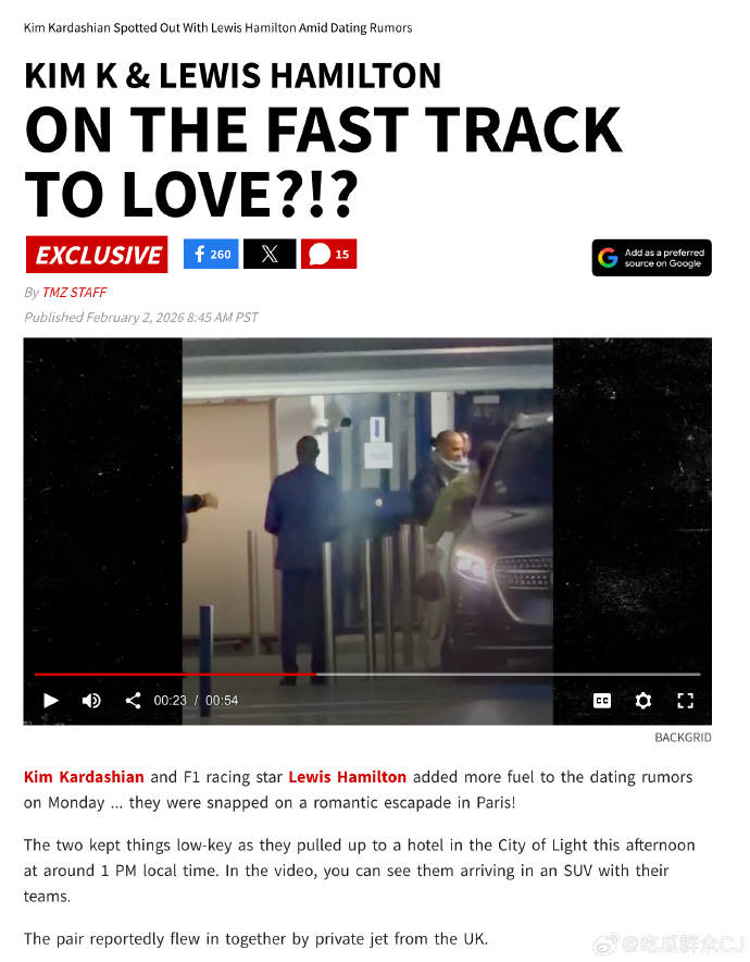 2月3日,欧美八卦圈被一记“重磅炸弹”炸开了锅:真人秀顶流金·卡戴珊与F1赛车传奇刘易斯·汉密尔顿,竟被拍到从英国庄园到巴黎酒店“无缝衔接&rdq