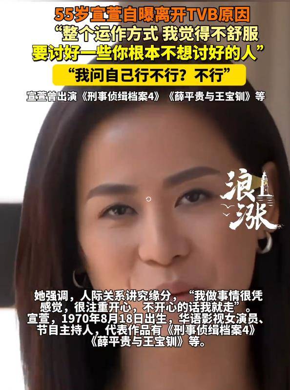 据2月2日报道,最近,TVB前当家花旦宣萱在访谈中的一番坦白,直接撕开了娱乐圈光鲜表皮下的某种“生存法则”。她离开老东家的理由干脆利落,没有含糊其辞的“寻求新发展”,而是直指核心:“纯粹是整个运作方式,我觉得不舒服,要讨好一些你根本不想讨好的人。”这句大实话,瞬间戳中了许多职场人的共鸣点。