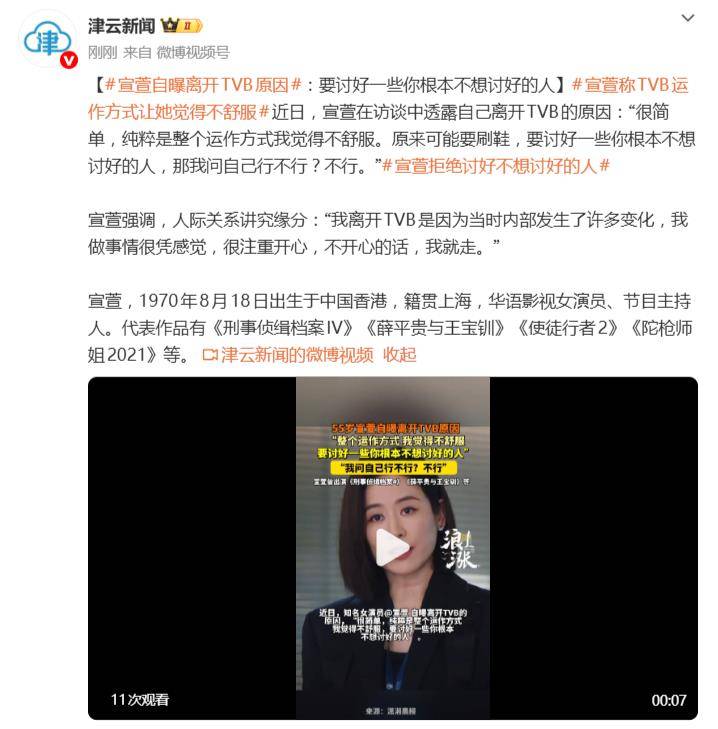 她的离开,是TVB黄金时代远去的一个侧写,也是个体对僵化体系的一次鲜明反抗。当“不开心就走”成为一种奢侈的勇气时,宣萱的这份直率,或许比任何职场鸡汤都更提神醒脑。这不禁让人思考:当工作环境不断侵蚀个人的底线与快乐时,是选择适应规则,还是像她一样,潇洒地说一句“我不玩了”?