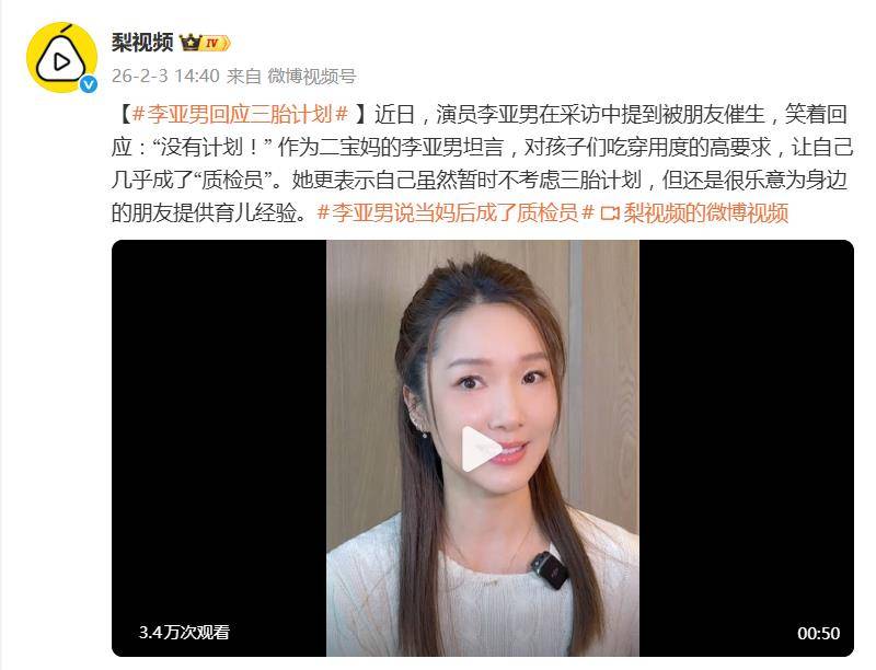 一句干脆利落的“没有计划!”,让演员李亚男最近在采访中的回应登上了热搜。面对朋友们的热情催生,这位二宝妈用笑容和明确的表态,婉拒了“三胎计划”,却意