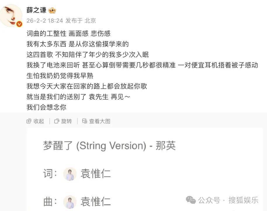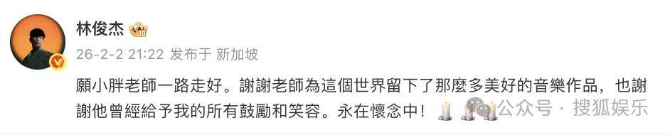 那英、老狼、林俊杰、薛之谦、尚雯婕、赵传、陈楚生等多位知名音乐人纷纷发文悼念,整个华语乐坛集体陷入追忆中......