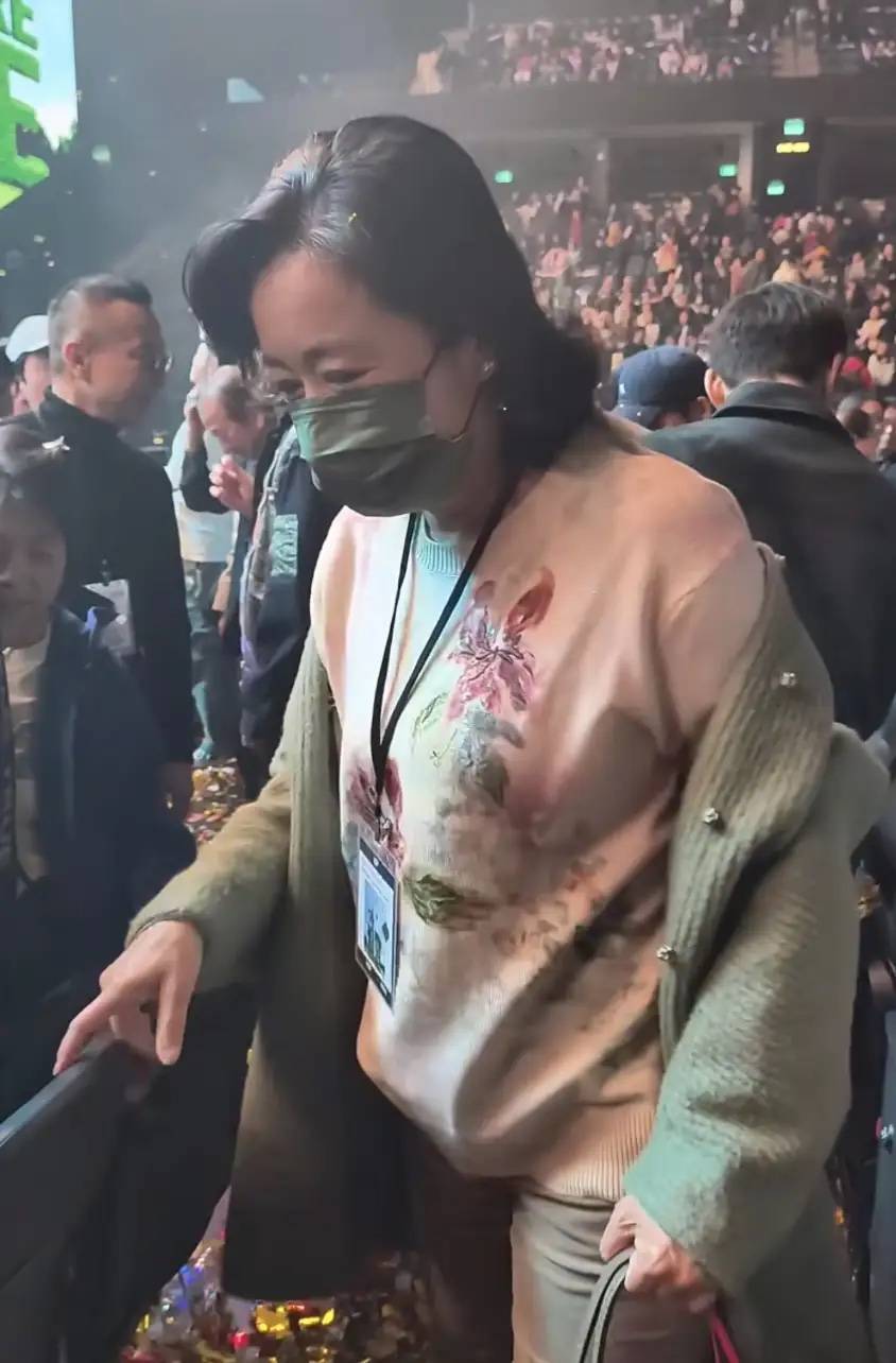 两人一起看演唱会,朱玲玲的打扮很低调,她气质很好、戴着口罩也掩不住贵气。在人群中,还是非常醒目的,尤其是老公和儿子都陪在身边。