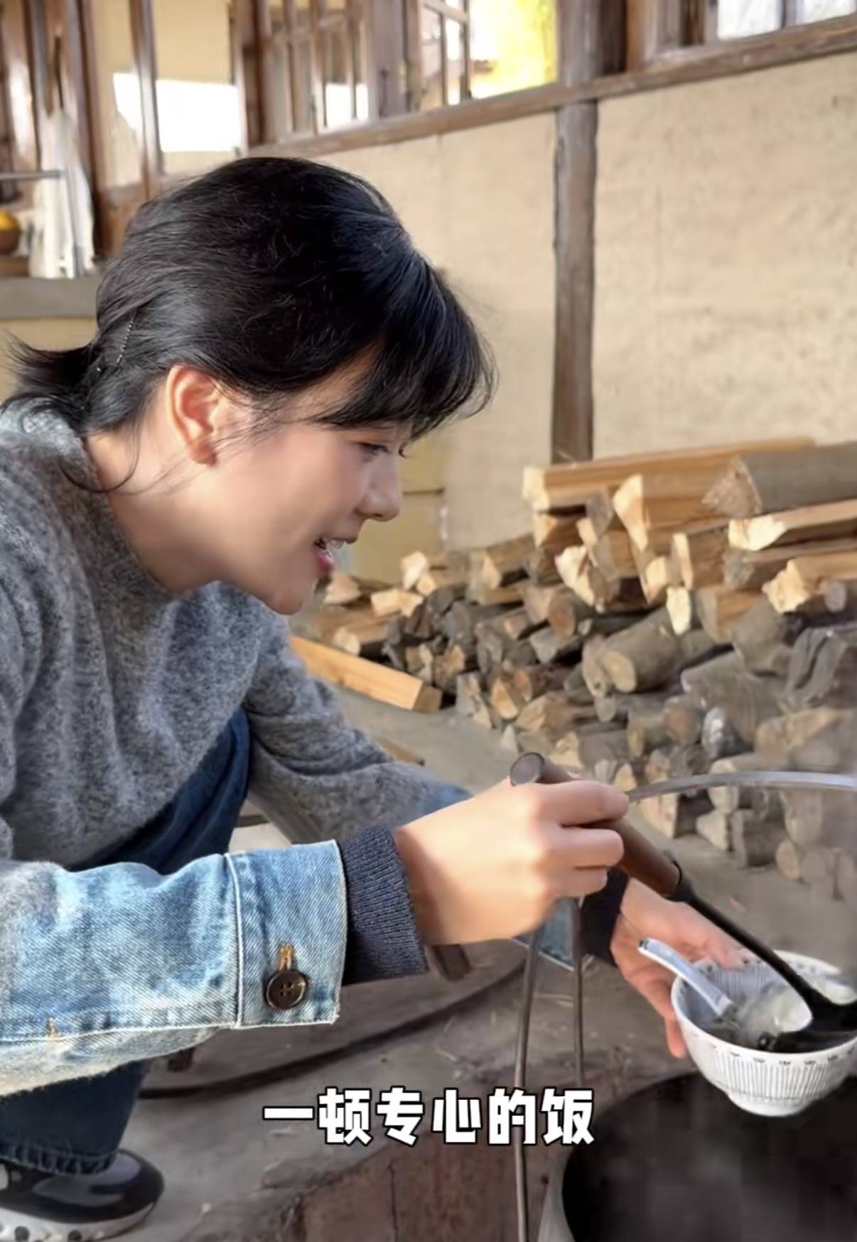 杨乐乐蹲在锅台前烧火,就像小时候一样。妈妈在灶台旁做饭,我们坐在旁边帮着添火。尤其是天冷的时候,做这样的事情真是太治愈了。