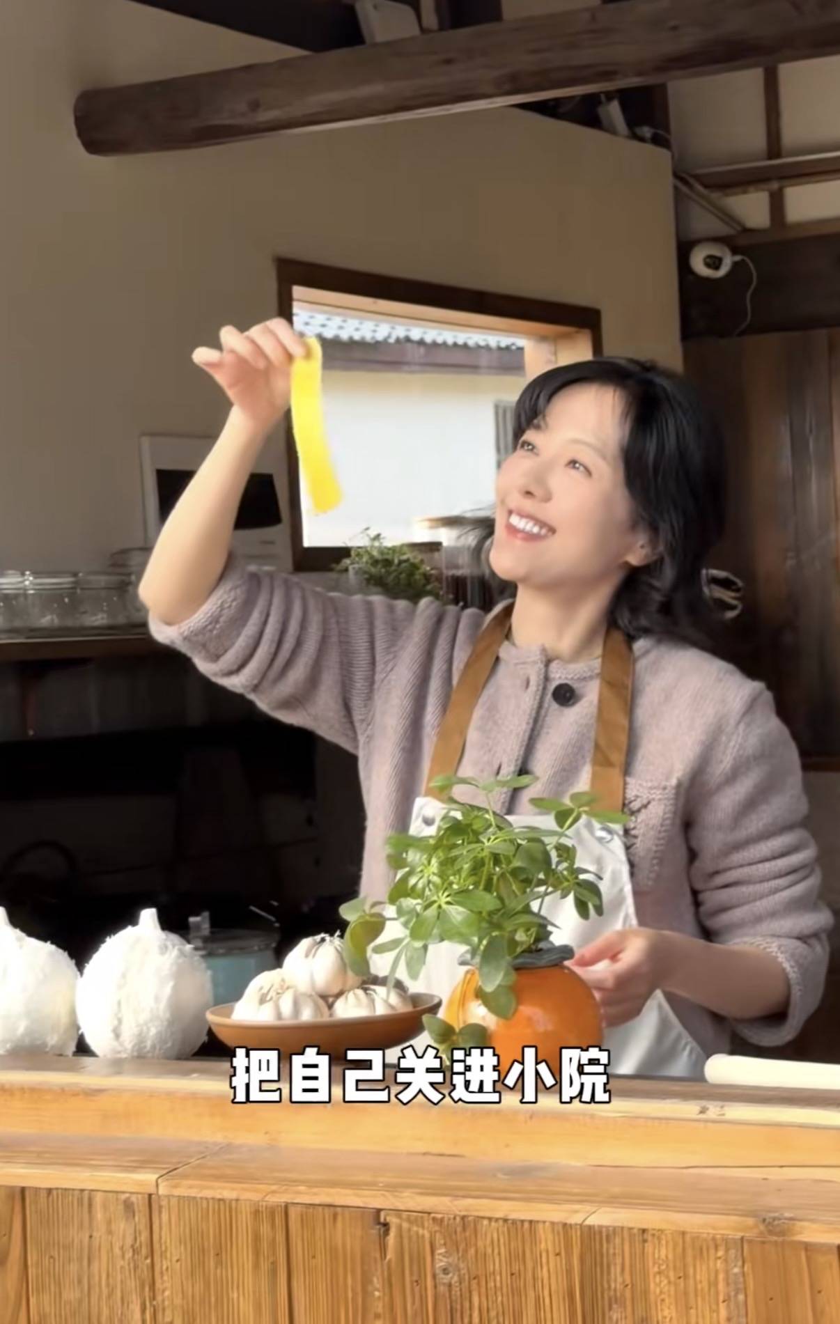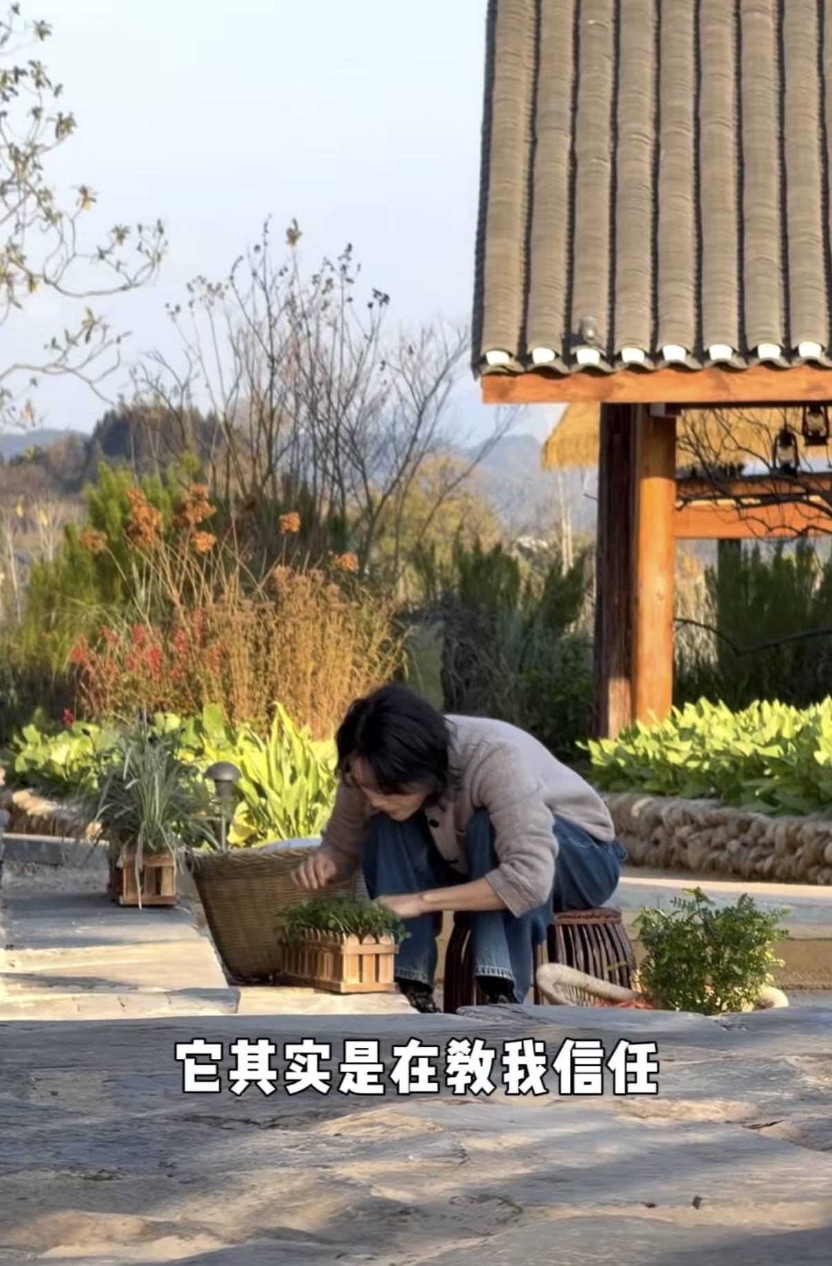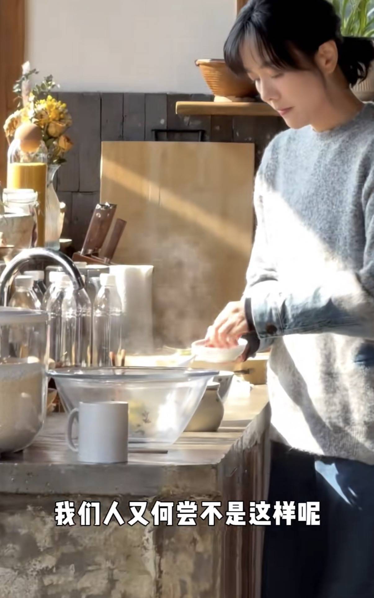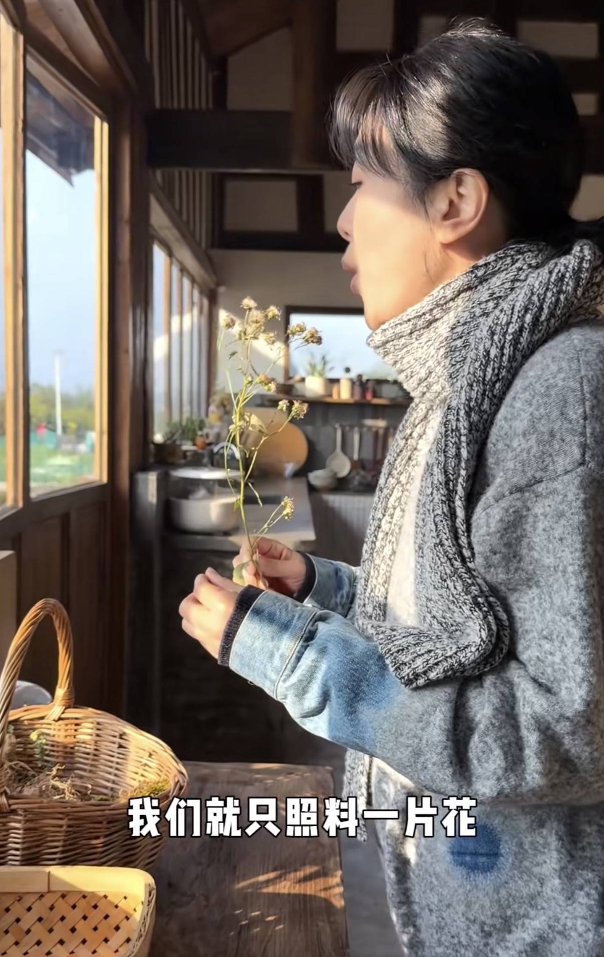 不仅能自己烧火做饭、养花喂鸭、还能坐下来和自己进行一场灵魂的对话。亦或者忙着纺线、摘菜,料理生活所需。