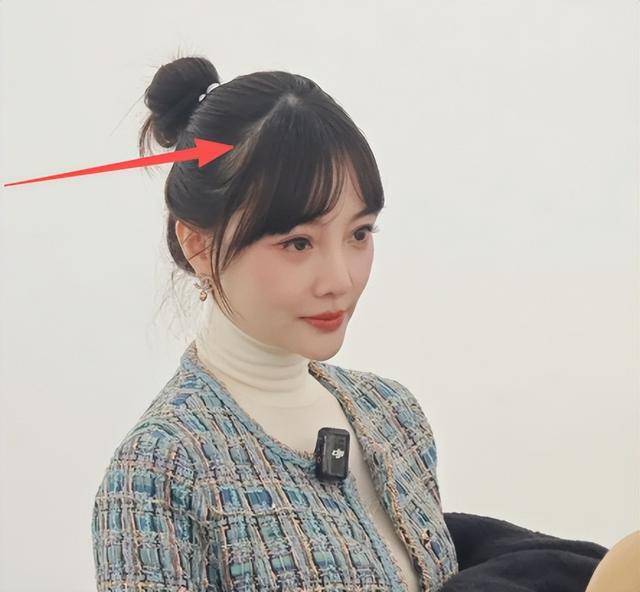 还有发型,丸子头虽然清爽,但也让发缝问题变得格外显眼。宽宽的发缝,让整个人看起来多了几分老气,和她平时视频里浓密秀发的模样,形成了鲜明对比。