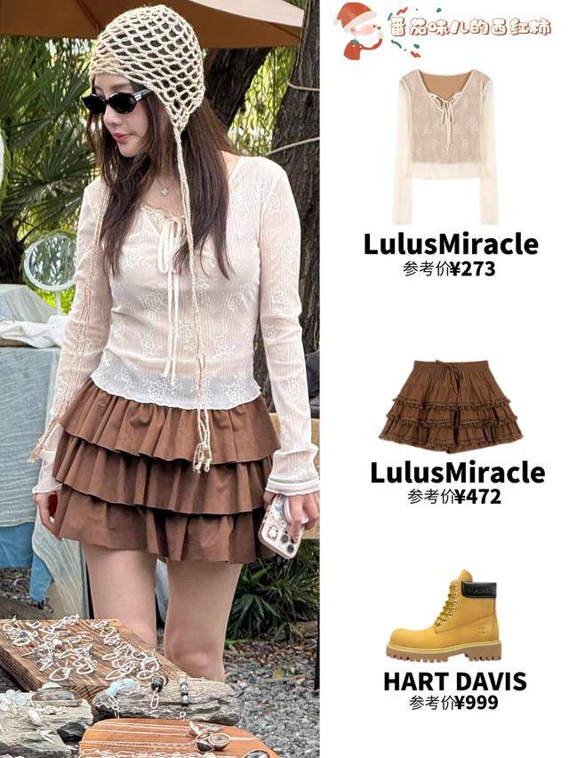 而在社交平台上,她最爱的还是少女感穿搭。像白色露脐背心配红色工装裤,秀出小蛮腰。