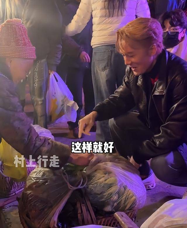 他没带助理,自己走到一个卖青菜的摊位前,手指轻轻捏了捏菜叶,用带着点生涩的贵州话问摊主“阿姨,这菜是今天刚从地里摘的不”。