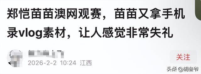 观赛结束之后,郑恺发了一条澳网 vlog,视频末尾有苗苗的身影。