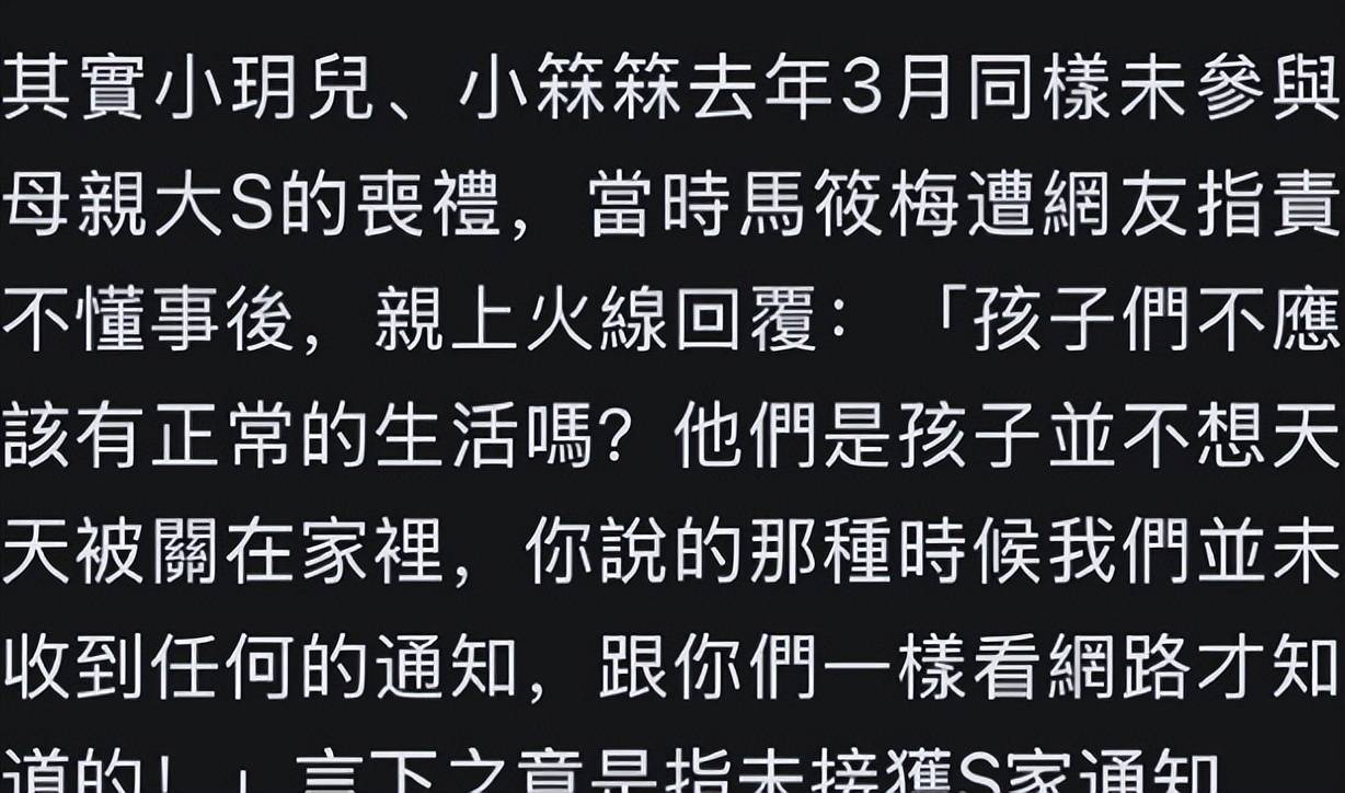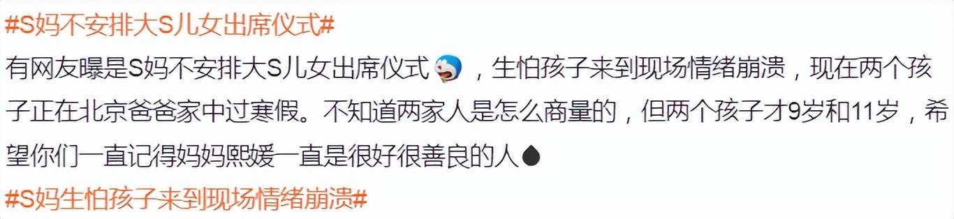 大S在世的时候从来没有让两个孩子暴露在大众面前,这个场合也不合适吧