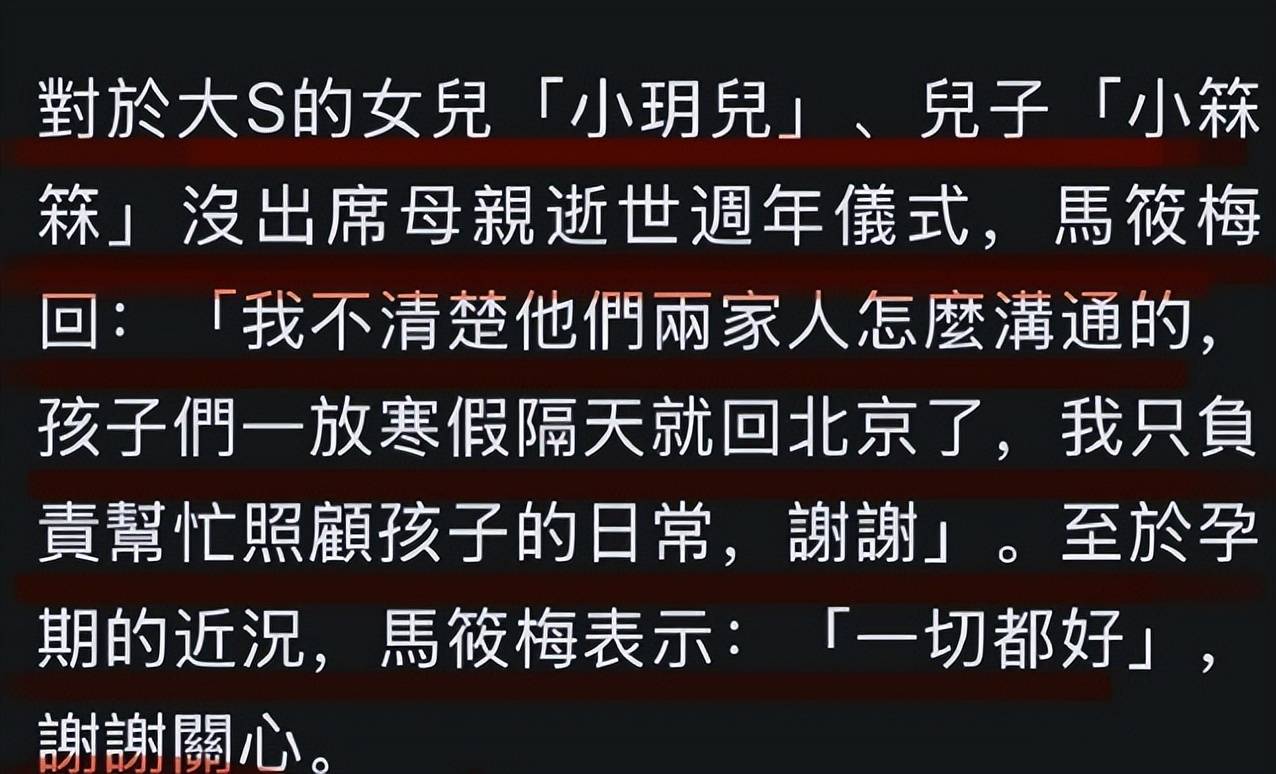诚然,大S极为反感自己的儿女出现在新闻报道中,她的家人自然也深谙此点。倘若在这样的日子里让孩子前往,必定会被媒体捕捉到镜头。故而,大S的家人仅仅是尊重她的意愿,旨在保护孩子们的隐私