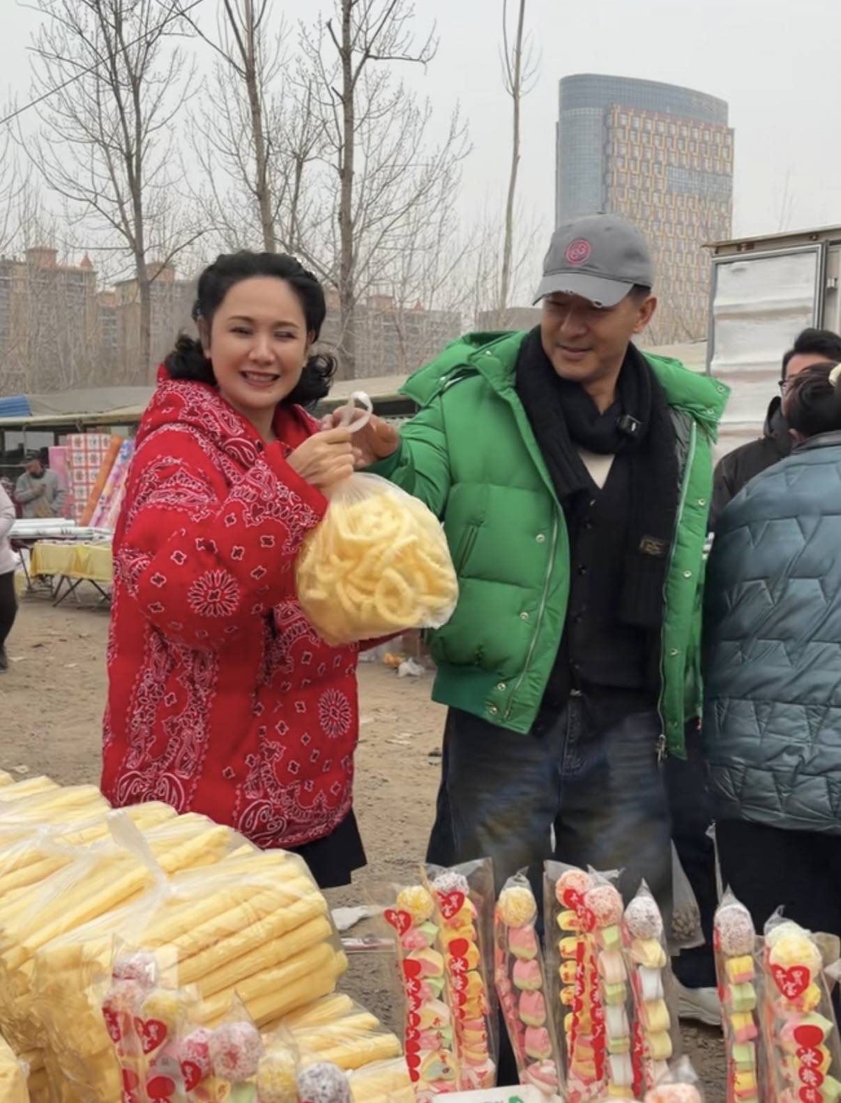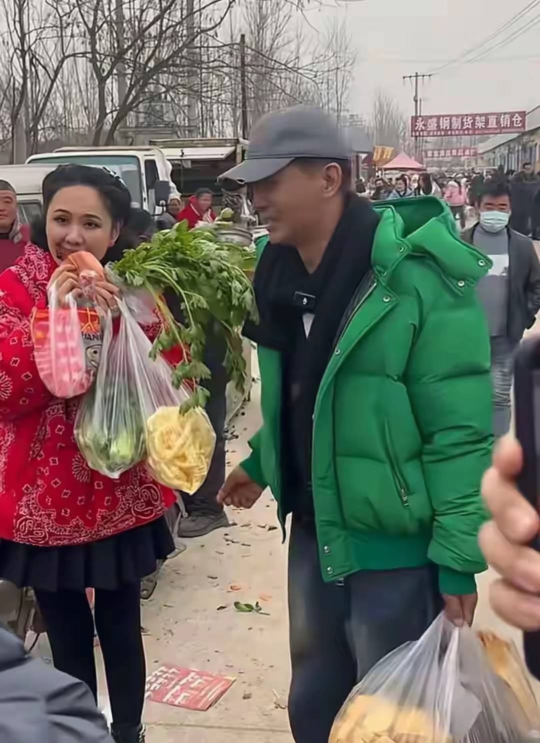 郭晓冬就在一旁买太喜欢的零食,夫妻俩把小日子过得简单幸福。而且他们这“红配绿”的打扮,在大集上也超级惹眼。