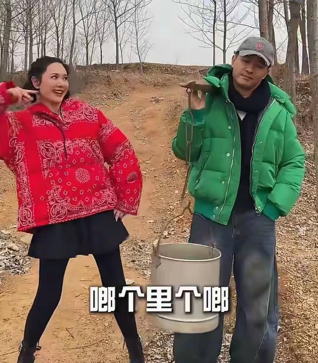 郭晓冬穿了一件绿色羽绒服,打扮得比程莉莎还洋气。只能说夫妻俩为了迎合对方,有点过犹不及了。