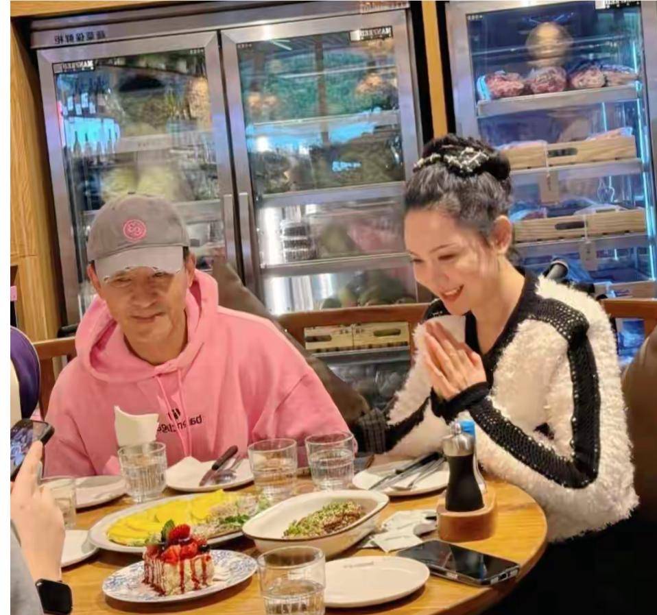 手里拎着芹菜、爆米花、还有一兜橘子,在合影的时候不忘了比心的小动作。程莉莎真是太可爱了,快50岁了还满满的少女心。