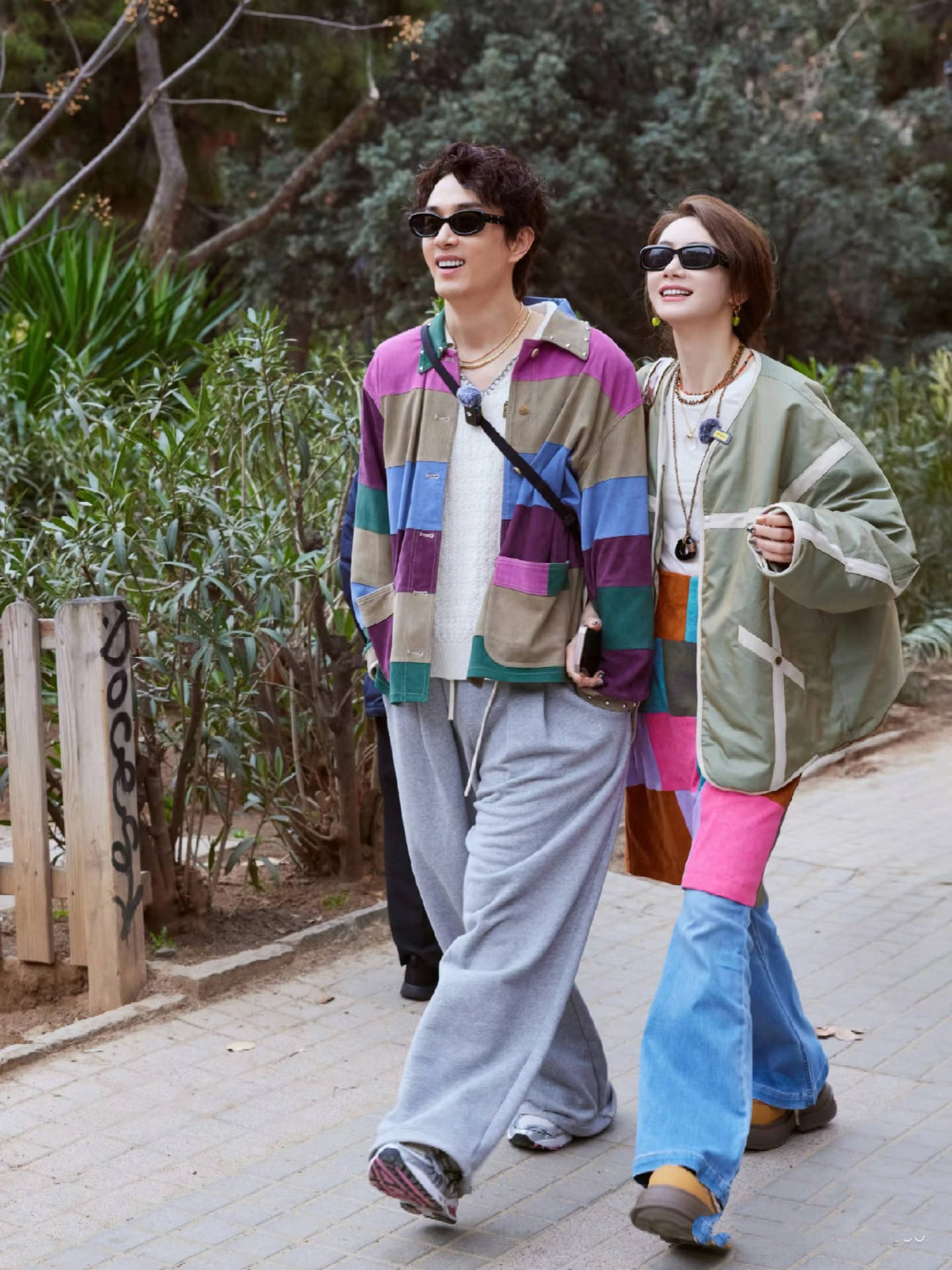 当李承铉的外套与戚薇的裙装行程撞色,这视觉上的呼应一点都不凌乱。两人戴同款墨镜,潮流洋气很拉风。