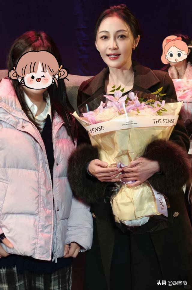演出结束后她谢幕的时候,穿着棕色的毛领大衣,笑着跟观众挥手,但眼眶红红的。