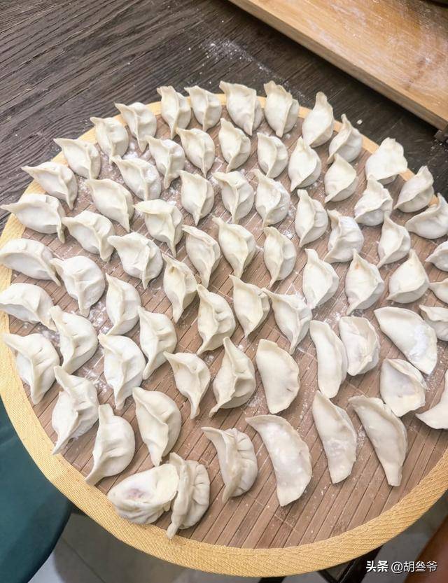 竹盘里的饺子摆得满满当当,形状各异,有的被捏成了圆润的元宝形,褶子捏得整整齐齐。