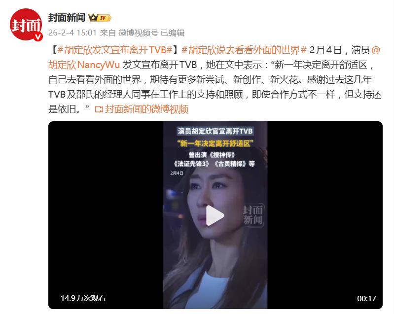 2月4日,TVB两届视后胡定欣的一纸告别文,给本就热议不断的TVB人才流失潮又添了一把火。一句“离开舒适区,自己去看看外面的世界”,看似是个人职业规划,却精准戳中了老东家TVB的现状与无数观众的复杂心绪。