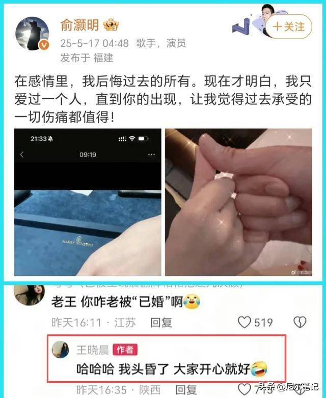 明眼人一看就知道这是在向王晓晨示爱,甚至疑似官宣结婚。