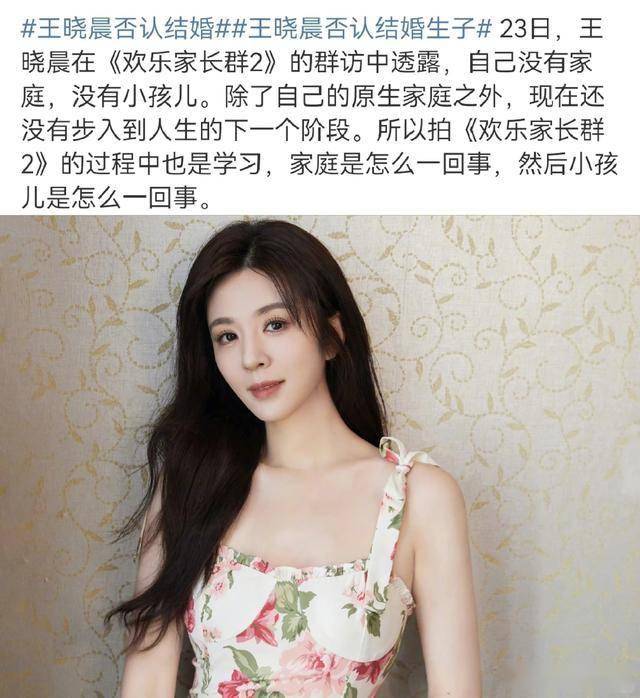 去年 9 月 23 日,王晓晨在宣传新剧《欢乐家长群 2》接受采访时,更是直接否认了和俞灏明的婚姻关系,说自己 “没有家庭,没有小孩儿,除了原生家庭外,还未步入人生的下一阶段”。