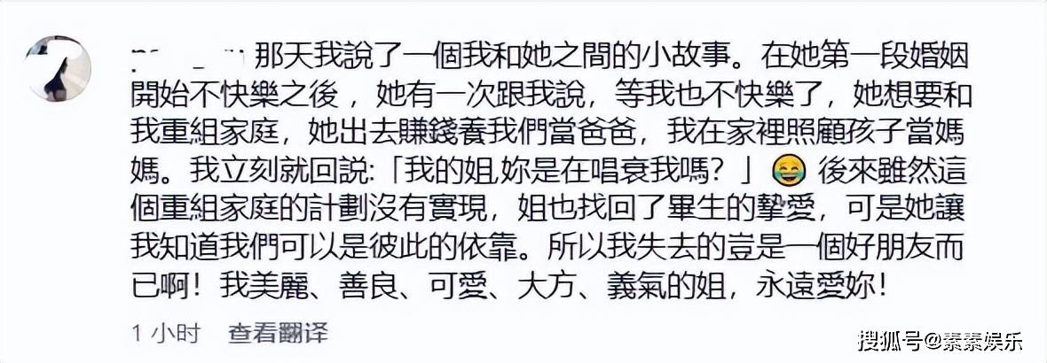 特别相信大S,姐妹情更是难得,希望大S看到了这一切。