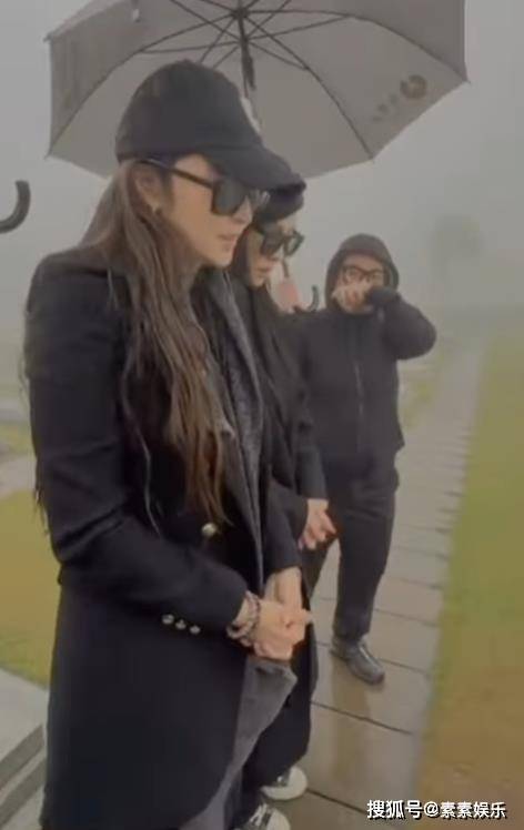 姐妹团重拾当年聚会时的“开心”状态,吴佩慈和范玮琪打着雨伞在墓碑前保持笑容。
