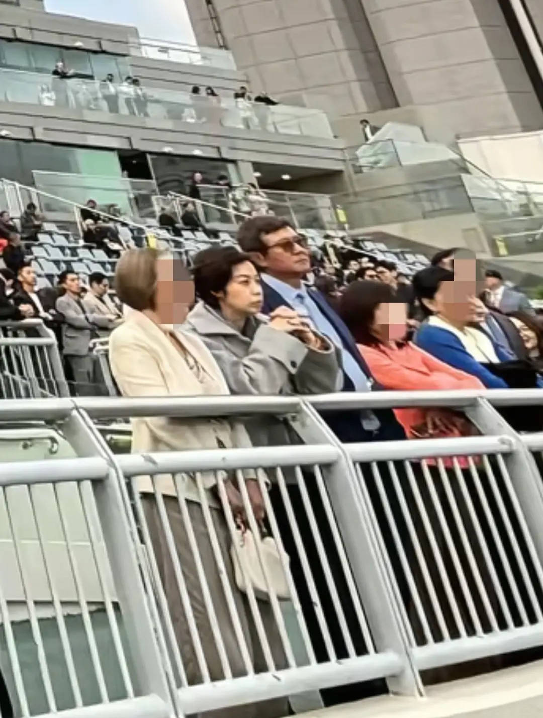 远远地看,夫妻二人气场都很强,属于那种自带威严感的人。也有网友表示:他们赛马该是输了,表情太严肃了。