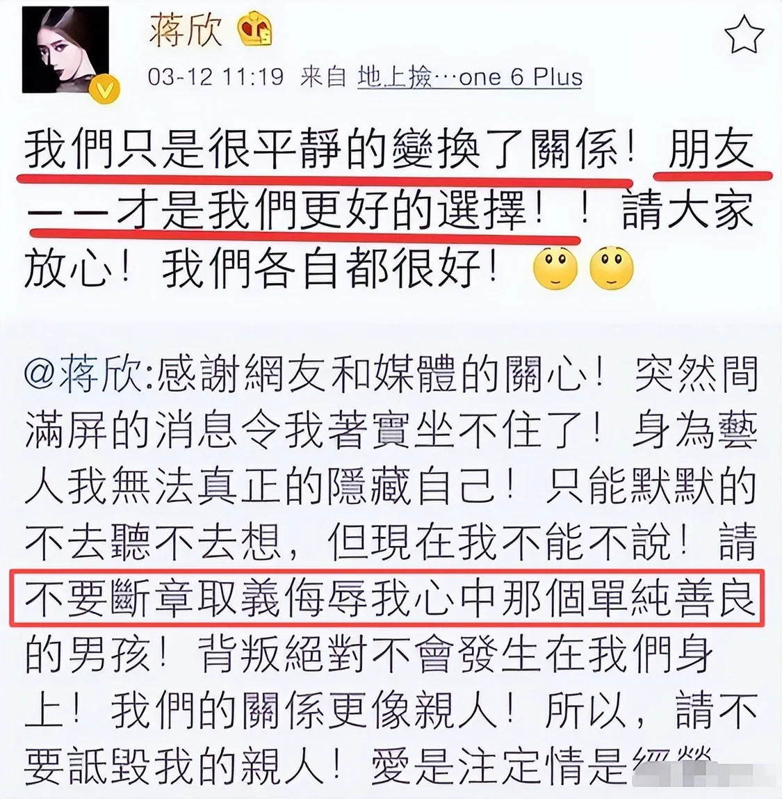 而蒋欣则一次次地主动发声,逐一澄清误会。