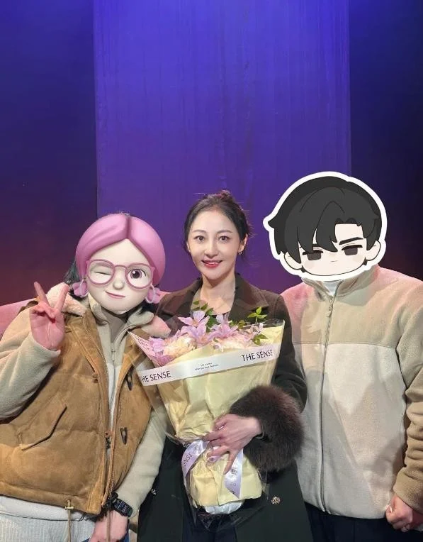 灯光亮起,她扎着丸子头,笑容略带僵硬,似乎想努力展现最好的一面,却难掩一丝落寞。